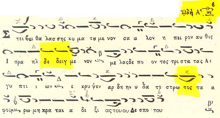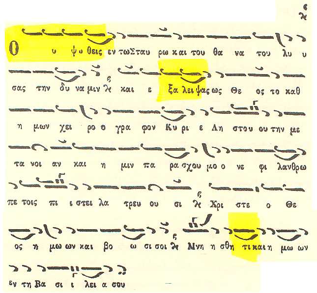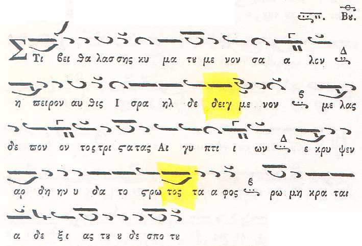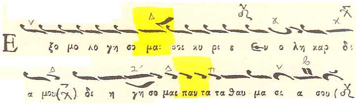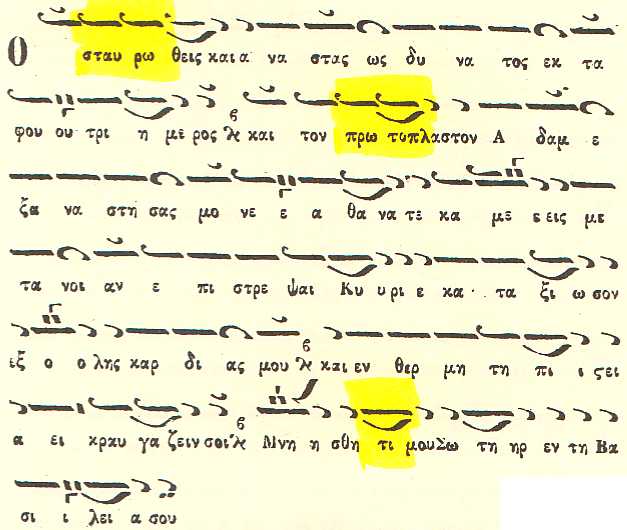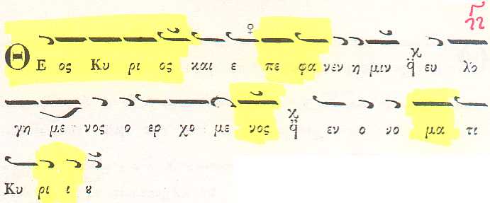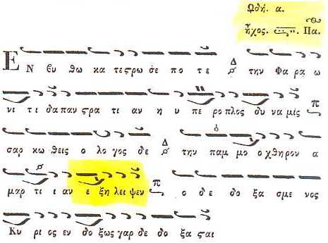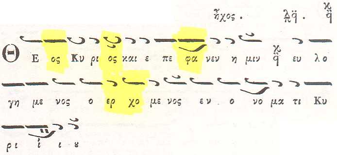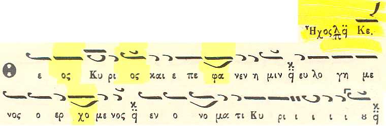 Κωνσταντῖνος Ψάχος: «Ἡ σύντονος μελέτη τῶν σημερινῶν τῆς Εὐρώπης σοφῶν (sic) ἐπὶ ἐκδόσεων ὁλονὲν πολλαπλασιαζομένων, ἀπέδειξεν ὅτι ἅπαντα τὰ ἐκκλησιαστικὰ ἡμῶν ᾄσματα ἔχουσιν ὡς βάσιν ἕν οἱονδήποτε μέτρον. [...]. Ἐπικρατεῖ δηλ. ἡ λεγομένη τονικὴ ρυθμοποιία ἐν ἀντιθέσει πρὸς τὴν ἀρχαίαν προσῳδιακήν, τὴν στηριζομένην οὐχὶ ἐπὶ τοῦ τόνου τῶν λέξεων, ἀλλ' ἐπὶ τῆς προσῳδίας τῶν συλλαβῶν», [σ. 56, ΨΑΧ]. Ἅγιος Γρηγόριος Ἐπίσκοπος Νύσσης (4ος αἰ.): «Ἀλλὰ καὶ τοῦτο προσήκει μὴ παραδραμεῖν ἀθεώρητον, ὅτι οὐ κατὰ τοὺς ἔξω τῆς ἡμετέρας σοφίας μελοποιοὺς, καὶ ταῦτα τὰ μέλη [σημ. τὰ ἐκκλησιαστικά] πεποίηται· οὐ γὰρ ἐν τῷ τῶν λέξεων τόνῳ κεῖται τὸ μέλος, ὥσπερ ἐν ἐκείνοις ἔστιν ἰδεῖν, παρ' οἷς ἐν τῇ ποιᾷ τῶν προσῳδιῶν συνθήκη, τοῦ ἐν τοῖς φθόγγοις τόνου βαρυνομένου τε καὶ ὀξυτονοῦντος καὶ βραχυνομένου τε καὶ παρατείνοντος, ὁ ῥυθμὸς ἀποτίκτεται, ἀλλὰ καὶ ἀκατάσκευόν τε καὶ ἀνεπιτήδευτον τοῖς θείοις λόγοις ἐνείρας τὸ μέλος, ἑρμηνεύειν τῇ μελῳδίᾳ τὴν τῶν λεγομένων διάνοιαν βούλεται, τῇ ποιᾷ συνδιαθέσει, τοῦ κατὰ τὴν φωνὴν τόνου τὸν ἐγκείμενον τοῖς ῥήμασι νοῦν, ὡς δυνατὸν, ἐκκαλύπτων». [PG, 44, 444], [σ. 42-43, ΑΛΥΓ]` Παρακάτω θὰ ἀντιπαραθέσουμε μερικὰ μέλη Βυζαντινῆς Μουσικῆς, γιὰ νὰ δείξουμε τὸν «καλλωπισμὸ» τῶν μελῶν πρὸς σταδιακὴ ἐπικράτηση τοῦ ἀποκαλουμένου (ἀπὸ τὸν Ψάχο) τονικοῦ ρυθμοῦ στὸ μέλος· στὴν ψαλμωδία ἐπικράτησε τὸ κατὰ ρυθμὸν ψάλλειν (ἤτοι εὐρωπαϊκῷ τῷ τρόπῳ) ἐν πολλοῖς -νομίζουμε- μὲ τὴν ἐμφάνιση τοῦ θεωρητικοῦ τοῦ Μαργαζιώτη (διότι μέχρι τότε χρησιμοποιούνταν τὸ τοῦ Θ. Φωκαέως), γιὰ αὐτὸ λέει καὶ ὁ Ἀπ. Λ. Βαλληνδρᾶς στὸν πρόλογο τοῦ Ἀναστασιματαρίου ἐκδ. «ΖΩΗ»: «Διὰ τοὺς μὴ ἐθισμένους (sic) εἰς τὴν χρῆσιν τοῦ τονικοῦ ρυθμοῦ»!