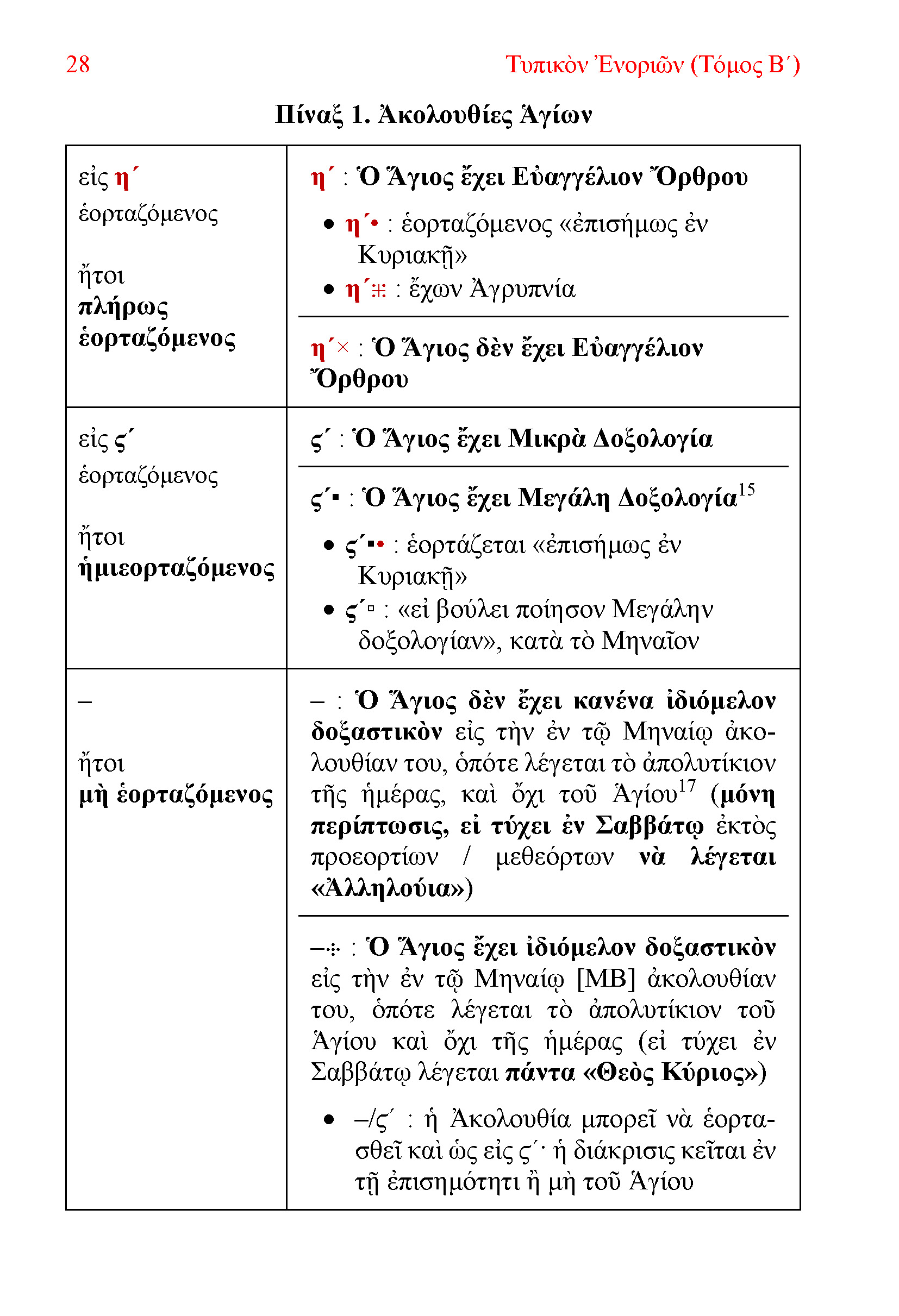 Εἰς τὸ ἄρθρο μας «Συστηματοποίηση καὶ Κατανόηση τοῦ Τυπικοῦ» τοῦ 2010 (δημοσιεύθηκε ἐδῶ καὶ στὸ Ψαλτολόγιον), τὸ ὁποῖον εἶναι μέρος τοῦ βιβλίου μας «Τυπικὸν Ὄρθρου Ἐνοριῶν», κάναμε προσπάθεια ὥστε νὰ συστηματοποιηθεῖ καὶ νὰ κατανοηθεῖ ἀκριβέστερα τὸ τυπικὸν τῆς Ἐκκλησίας μας, ὅπως ἰσχῦει, βάσει Συνοδικῆς ἀποφάσεως, σύμφωνα μὲ τὸ Τυπικὸν τῆς Μεγάλης τοῦ Χριστοῦ Ἐκκλησίας ὑπὸ τοῦ Γ. Βιολάκη (ΤΜΕ).