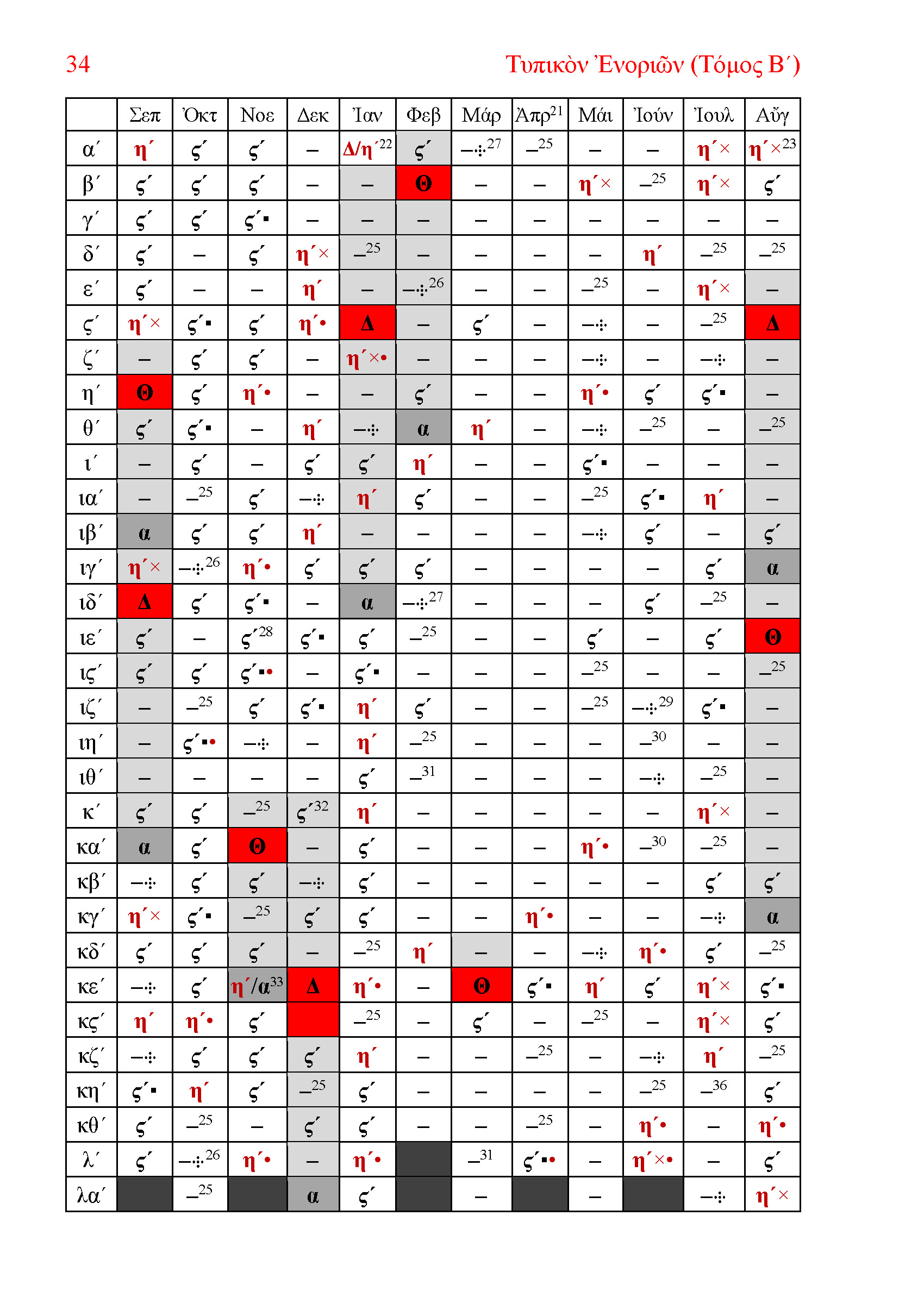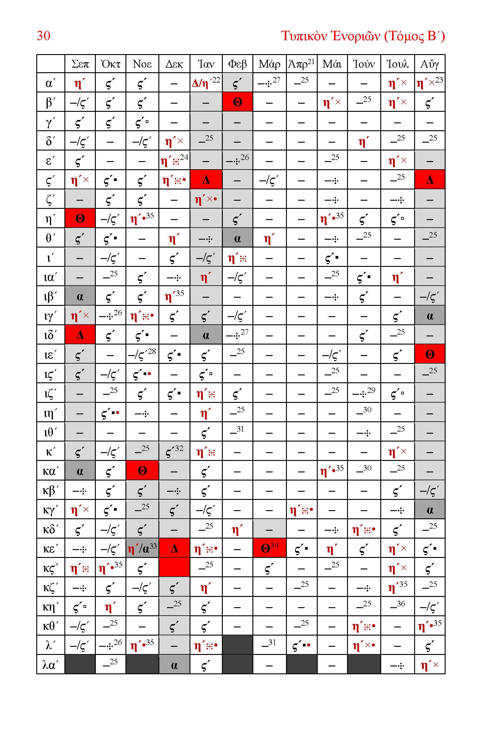 Πίνακας 2. Πλήρης Πίναξ Μηνολογίου