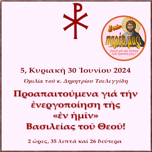 Προαπαιτούμενα γιά τήν ἐνεργοποίηση τῆς «ἐν ἡμῖν» Βασιλείας τοῦ Θεοῦ