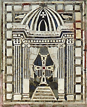 Εἰκ. 10. Κιβώριον τοῦ Ἄμβωνος ἢ τῆς Ἁγίας Τραπέζης, καί μεγάλος Σταυρός. Ἅγ. Γεώργιος Ῥοτόντα (Θεσσαλονίκη), Μωσαϊκὸ ἀψίδος.25